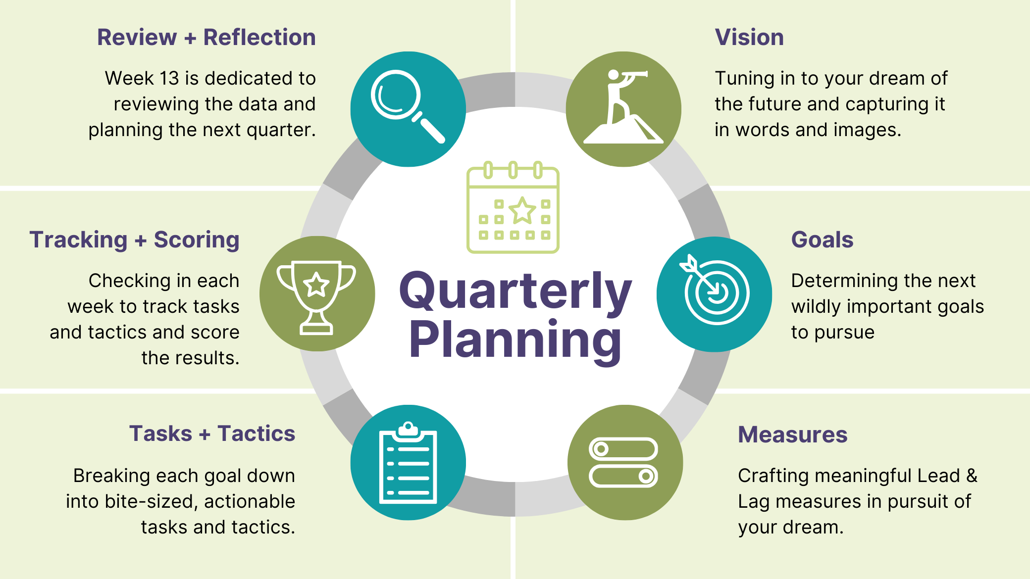 A reusable quarterly system for people who want to accomplish the “right” tasks and execute vision-aligned actions to achieve your goals.